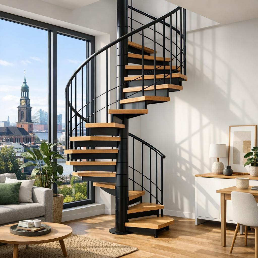 Natürlich gibt es auch kleine Einschränkungen. Die Wendeltreppe ist etwas steiler als eine herkömmliche Treppe, was gelegentlich anstrengend sein kann, wenn man schwere Gegenstände trägt. Für mich überwiegen jedoch die Vorteile deutlich. Das Design fügt sich harmonisch ein und macht die Wohnung optisch größer und luftiger.